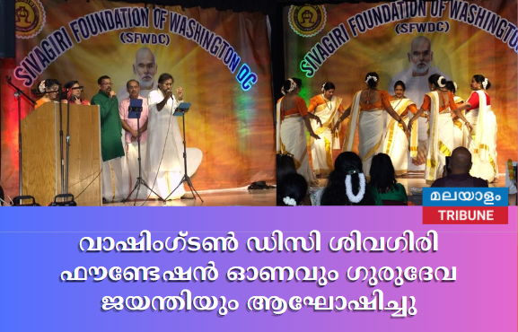 The Sivagiri Foundation of Washington DC (SFWDC) hosted a grand celebration of Onam and Gurudeva Jayanthi at the Potomac Community Center in Potomac, Maryland. The event brought together members and supporters for an afternoon of traditional festivities, including a sumptuous sadhya (feast), speeches, and a series of cultural performances.