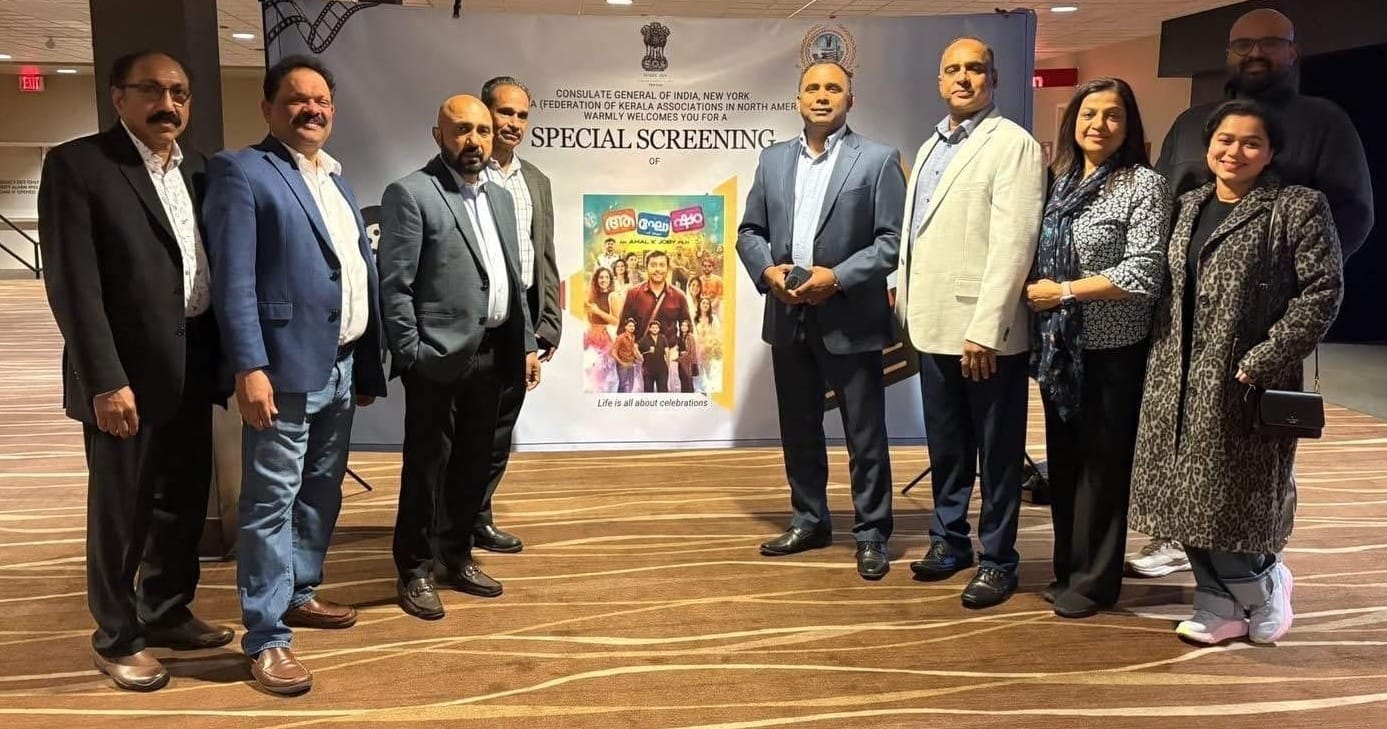 ന്യൂ ജേഴ്സി :ഇന്ത്യൻ കോൺസുലെറ്റ് ഫൊക്കാനയുമായി പാർട്ണർഷിപ്പിൽ "ആഘോഷം" സിനിമയുടെ പ്രത്യേക പ്രദർശനം ന്യൂ ജേഴ്സിയിൽ വെയ്നിലെ AMC തിയറ്ററിൽ നിറഞ്ഞ സദസിൽ നടന്നു. കൗൺസിൽ പിയുഷ് സിങ് മൂവിയുടെ ഉൽഘാടനം നിർവഹിച്ചു. പ്രസിഡന്റ് സജിമോൻ ആന്റണി ഏവർക്കും സ്വാഗതം രേഖപ്പെടുത്തി.കൗണ്ടി ലെജിസ്ലേറ്റർ ആനി പോൾ , ലിവിങ്സ്റ്റൺ ഡെപ്യൂട്ടി മേയർ കെത്താൻ ബുപ്തനി തുടങ്ങി നിരവധി വിശിഷ്ട വ്യക്തികൾ പങ്കെടുത്തു.