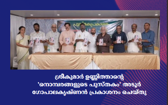 അടൂര്: അമേരിക്കന് പ്രവാസി മലയാളിയും സംഘടനാ പ്രവര്ത്തകനുമായ ശ്രീകുമാര് ഉണ്ണിത്താന്റെ ' നൊമ്പരങ്ങളുടെ പുസ്തകം ' സംവിധായകന് അടൂര് ഗോപാലകൃഷ്ണന് പ്രകാശനം ചെയ്തു. ഡപ്യൂട്ടി സ്പീക്കര് ചിറ്റയം ഗോപകുമാര് ആദ്യ പതിപ്പ് ഏറ്റുവാങ്ങി. ഭാര്യ ഉഷയുടെ ഓര്മ്മകള് പങ്കുവെയ്ക്കുന്ന കുറിപ്പുകളുടെ സമാഹാരം ജീവിതാനുഭവങ്ങളുടേയും വേര്പാടിന്റെ ദുഃഖങ്ങളുടേയും ആകെ തുകയാണെന്ന് അടൂര് പറഞ്ഞു. വേദനയെ എഴുത്ത് ഏറ്റെടുത്ത കാഴ്ചയാണ് ഇത്. പ്രവാസ ജീവിതത്തിനിടിലും മലയാളവും എഴുത്തും കൈവവിടുന്നില്ല എന്നതാണ് പ്രധാനം. ഇത് ശ്രീകുമാറിന്റെ ആദ്യ പുസ്തകം ആകട്ടെ എന്ന് ആശംസിക്കുന്നു.അതിനര്ത്ഥം ഇനിയും കൂടുതല് എഴുതണമെന്നാണ്. അടുര് പറഞ്ഞു.