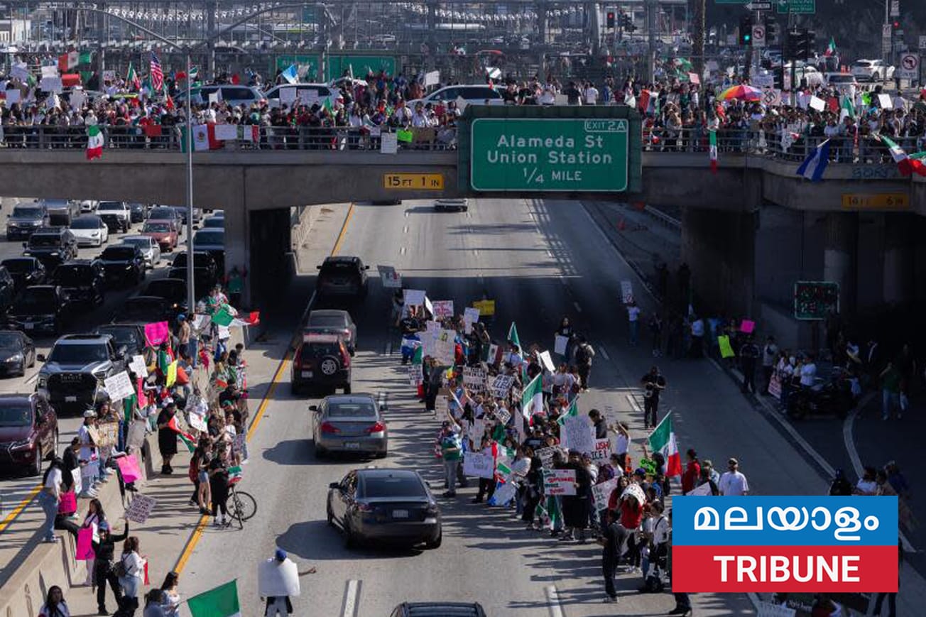 ലോസ് ഏഞ്ചൽസ് (കാലിഫോർണിയ) :പ്രസിഡന്റ് ട്രംപിന്റെ നിയമവിരുദ്ധ കുടിയേറ്റത്തിനെതിരായ നടപടികളിലും അദ്ദേഹത്തിന്റെ നാടുകടത്തൽ നയങ്ങളിലും പ്രതിഷേധിച്ച് ആയിരക്കണക്കിന് പ്രകടനക്കാർ ഞായറാഴ്ച ലോസ് ഏഞ്ചൽസിലെ ഡൗണ്ടൗണിൽ റാലി നടത്തി 101 ഫ്രീവേയുടെ ഒരു ഭാഗം അടച്ചുപൂട്ടി.
