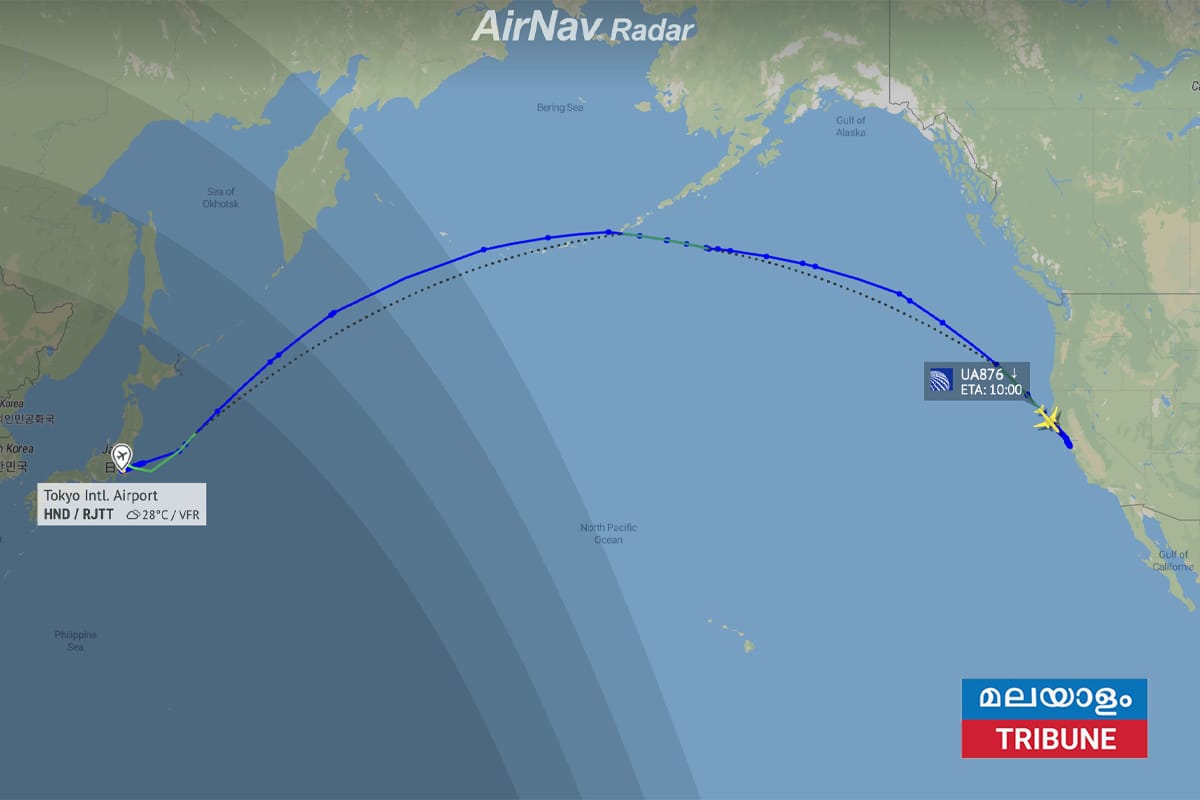 ടോക്കിയോ: ടോക്കിയോയിലെ ഹനേഡ വിമാനത്താവളത്തിൽ നിന്ന് സാൻ ഫ്രാൻസിസ്കോയിലേക്ക് പുറപ്പെട്ട യുണൈറ്റഡ് എയർലൈൻസ് വിമാനം UA876 അടിയന്തരാവസ്ഥ പ്രഖ്യാപിച്ചു. പറന്നുയർന്ന് ഏകദേശം 9 മണിക്കൂറിന് ശേഷമാണ് ബോയിംഗ് 777-200ER (രജിസ്ട്രേഷൻ N229UA) വിമാനം അടിയന്തരാവസ്ഥ പ്രഖ്യാപിച്ചത്.