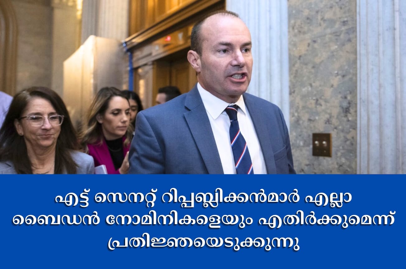 ന്യൂയോർക്: മൈക്ക് ലീയുടെ (ആർ-യുട്ട) നേതൃത്വത്തിലുള്ള എട്ട് സെനറ്റ് റിപ്പബ്ലിക്കൻമാർ പ്രധാന നിയമനിർമ്മാണത്തെയും ഡെമോക്രാറ്റിക് സെനറ്റിൻ്റെ നേതൃത്വത്തിലുള്ള ബൈഡൻ നോമിനികളെയും എതിർക്കുമെന്ന് പ്രതിജ്ഞയെടുത്തു
