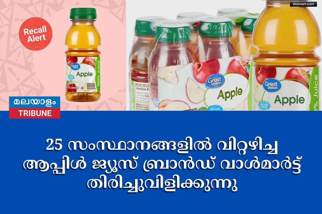 ഗ്രീൻവില്ലെ,(കരോലിന):ഏകദേശം 10,000 ആപ്പിൾ ജ്യൂസിൽ അപകടകരമായ അളവിൽ ആർസെനിക് അടങ്ങിയിട്ടുണ്ടെന്ന് കണ്ടെത്തിയതിനെ തുടർന്ന് വാൾമാർട്ട് ആപ്പിൾ ജ്യൂസ് ബ്രാൻഡ് തിരിച്ചുവിളിച്ചു.