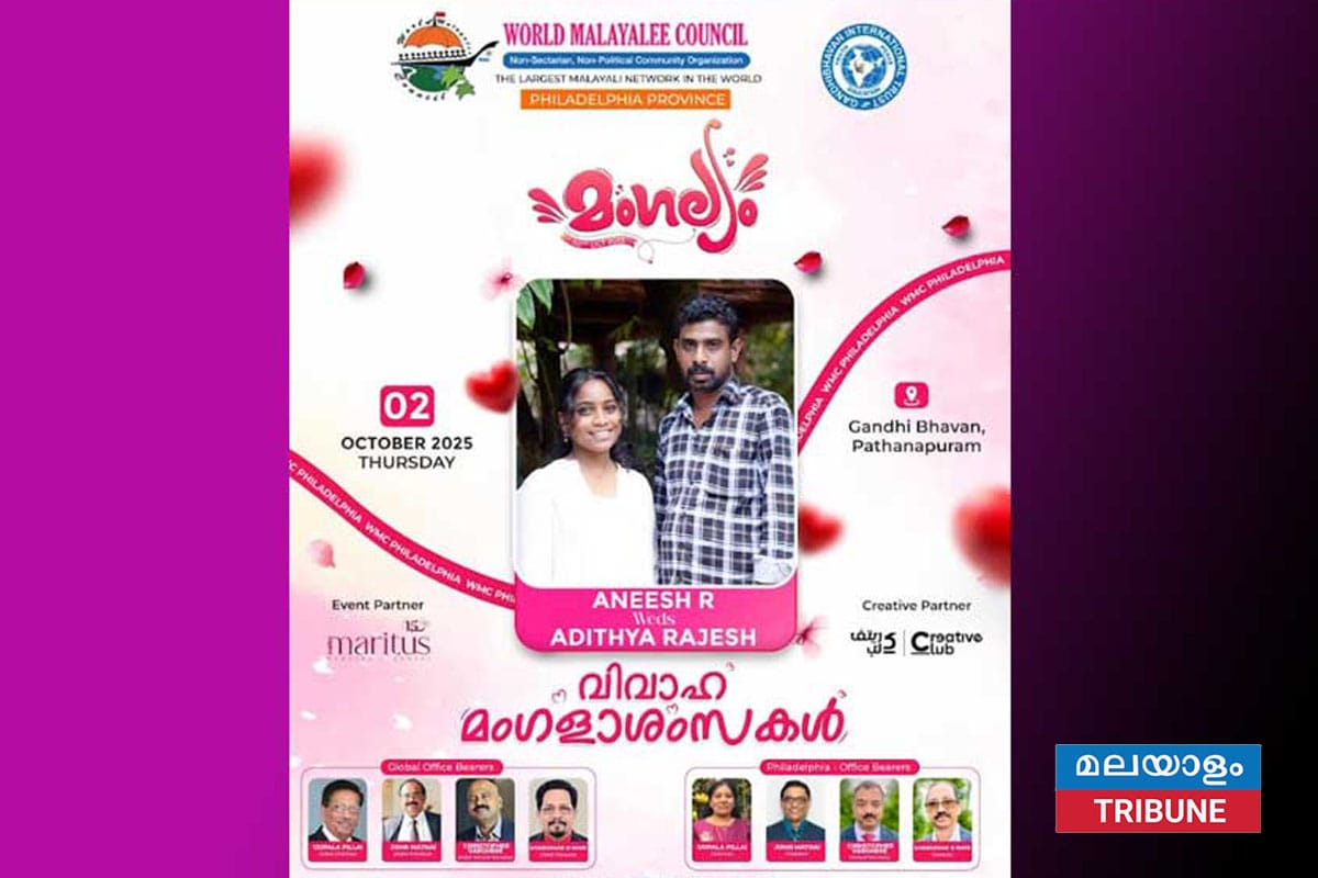 ഫിലാഡൽഫിയ : വേള്ഡ് മലയാളി കൗണ്സില് ഫിലാഡല്ഫിയ പ്രൊവിന്സ് പത്തനാപുരം ഗാന്ധിഭവന്റെ സഹകരണത്തോടെ 25 ജോഡി നിര്ധന യുവതി യുവാക്കളുടെ വിവാഹം നടത്തുന്നു. കേരളത്തിന്റെ എല്ലാ ജില്ലകളില് നിന്നുമുള്ള അനുയോജ്യരായ യുവതി യുവാക്കളെയാണ് അവരുടെ ബന്ധുമിത്രാദികളുടെ സഹകരണത്തോടെ കണ്ടെത്തിയിട്ടുള്ളത്. വിവാഹത്തിനുള്ള വസ്ത്രങ്ങള്, സ്വര്ണ്ണാഭരണങ്ങള്, യാത്രാചിലവ്, സമ്പൂര്ണ്ണ സദ്യ, പോക്കറ്റ് മണി അടക്കം വധൂവരന്മാര്ക്ക് ആവശ്യമായ എല്ലാ കാര്യങ്ങളും നിര്വഹിക്കുന്നത് വേള്ഡ് മലയാളീ കൗണ്സിലിന്റെ ഫിലാഡല്ഫിയ പ്രൊവിന്സാണ്.