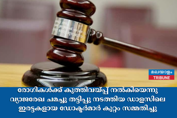 ഡാളസ് : രോഗികൾക്ക് കുത്തിവയ്പ്പ് നൽകിയെന്നു വ്യാജരേഖ ചമച്ച ഡാളസിലെ ഇരട്ടകളായ രണ്ട് ഡോക്ടർമാർ ഹെൽത്ത് കെയർ തട്ടിപ്പ് കുറ്റം സമ്മതിച്ചു.